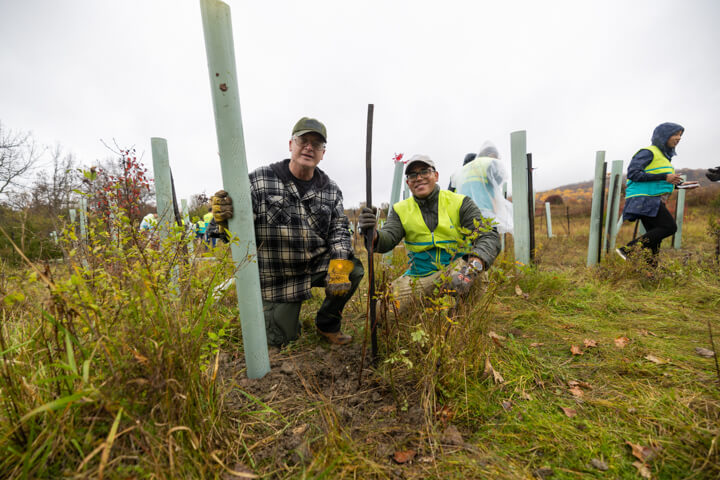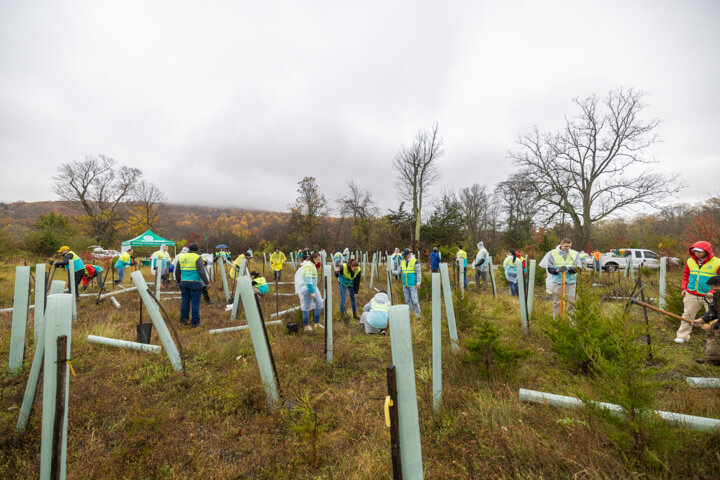 Fifty ASEZ WAO volunteers planted 100 tree saplings at the Outdoor Discovery Center in Cornwall, New York, on Sunday, October 29, 2023. The tree planting effort is ASEZ WAO’s Mother’s Forest Campaign to plant 7 billion trees to reduce greenhouse gases.