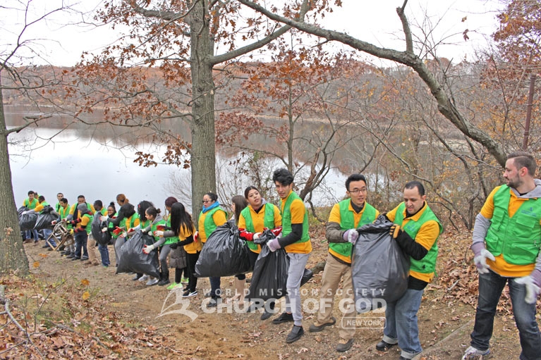 A cleanup was held at Hempstead Lake State Park in Long Island as well. About 90 members filled approximately 240 garbage bags, using rakes, pickers, shovels and gloves. Everyone worked together up and down the shoreline of the lake, cleaning up a total distance of 1 mile.